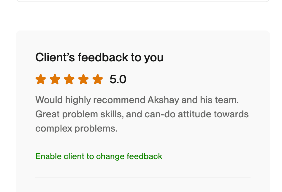 Would highly recommend Akshay and his team. Great problem skills, and can-do attitude towards complex problems.